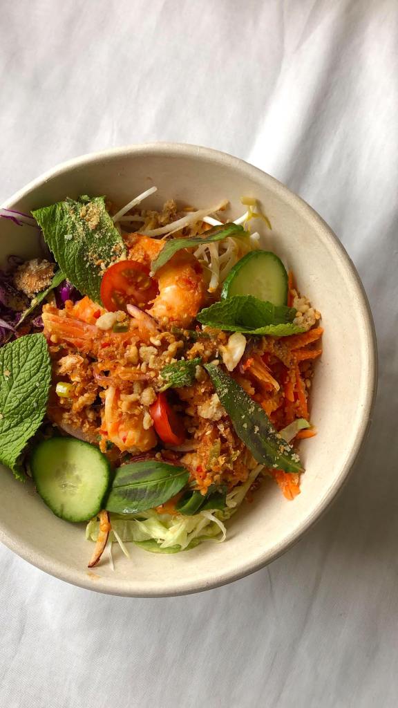 CHILLI PRAWN VERMICELLI SALAD with heapsss of beansprout, tangy fish sauce and pickled veg all on a bed of bouncy noodles. this was such a good amount heat and tasted super fresh, perfect for the summer