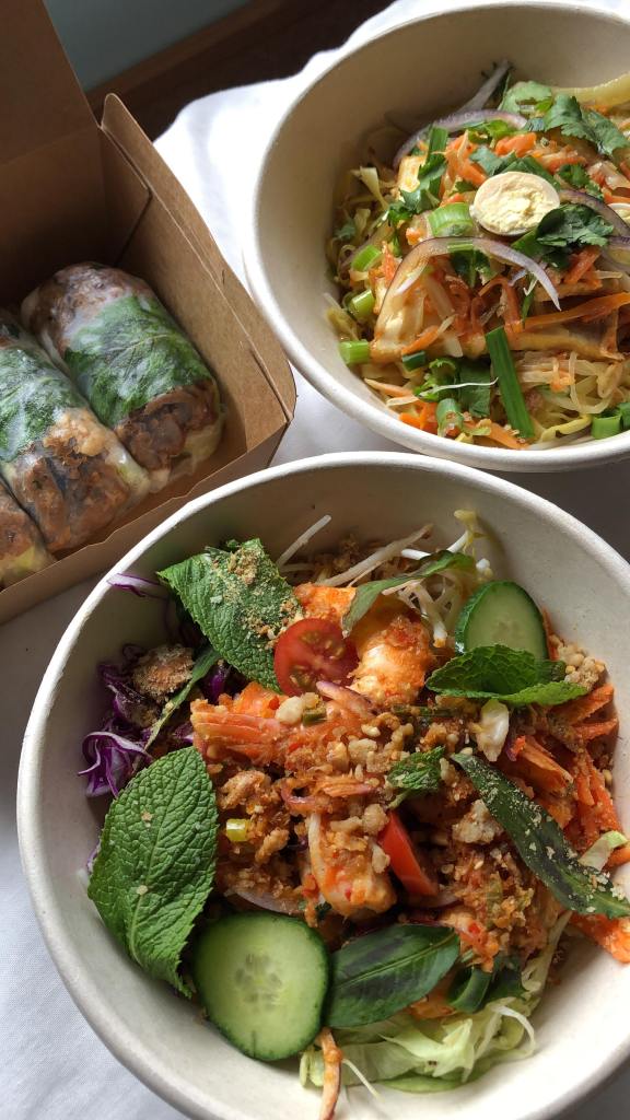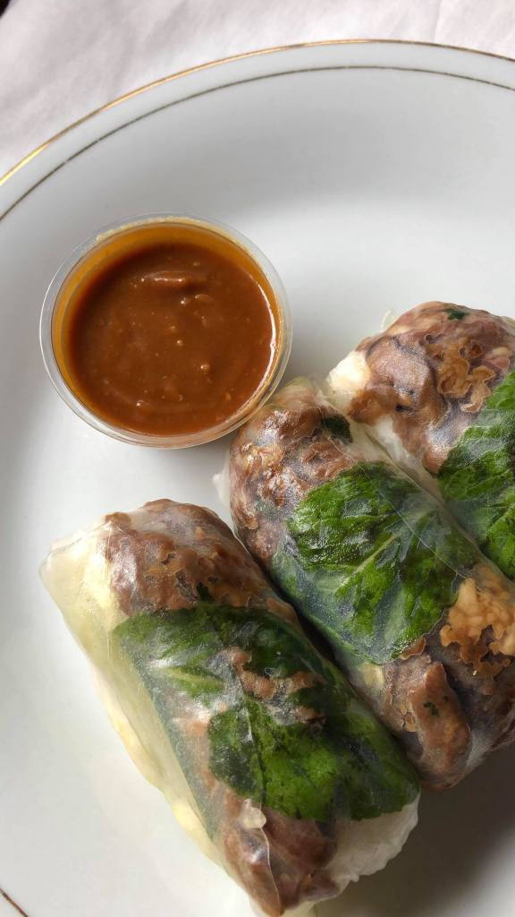 STIR FRIED BEEF RICE PAPER ROLLS that are made fresh to order!! unlike some other franchises, these bad bois were so fresh and tasty. the beef itself was perfectly seasoned and there was a generous amount of ingredients (incl. herbs!) inside each one